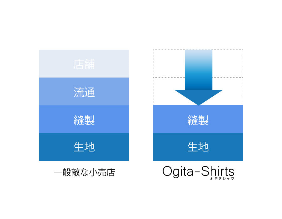 Ogitaシャツは百貨店や専門店に卸すシャツと同様、高品質のシャツを提供しています